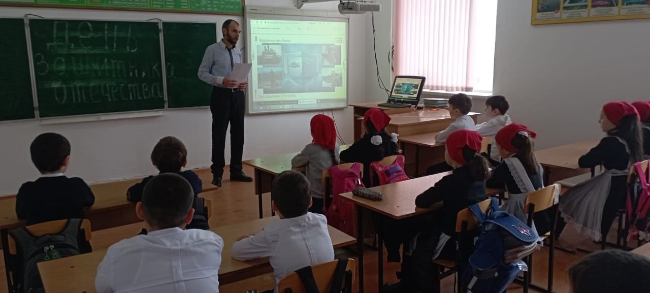 С 19.02. по 21.02. 2024 г., в честь Дня защитника Отечества в МБОУ «СОШ с.Татай-Хутор» совместно с отделом УФСБ России в Ножай-Юртовском районе по Чеченской Республике были проведена беседы и классные часы, посвященные важности служения и защиты Родины. Учащиеся узнали о истории этого праздника, его значения и традициях. Были рассмотрены исторические факты о защите Отечества в разные периоды времени, а также рассказано об отважных защитниках Родины. В ходе бесед были подняты вопросы патриотизма, гордости за свою страну и важности служения на благо общества. Учащиеся обсудили, как они сами могут внести свой вклад в защиту Отечества, будь то через службу в армии, гражданскую активность или поддержку близких.