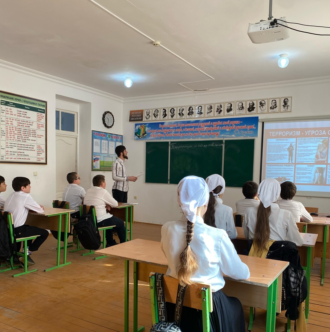 02.03.202402.03.2024г. В МБОУ «СОШ с.Татай-Хутор», классный руководитель 7 класса провел информационный час "Терроризм и его проявления».Главная цель мероприятия — привлечь внимание на необходимость проявления бдительности, ознакомление с основными правилами поведения в условиях теракта, формирование патриотизма, уважения к Отечеству.В рамках мероприятия были освещены следующие вопросы:История развития терроризма.Правила проведения при обнаружении бесхозных предметов.