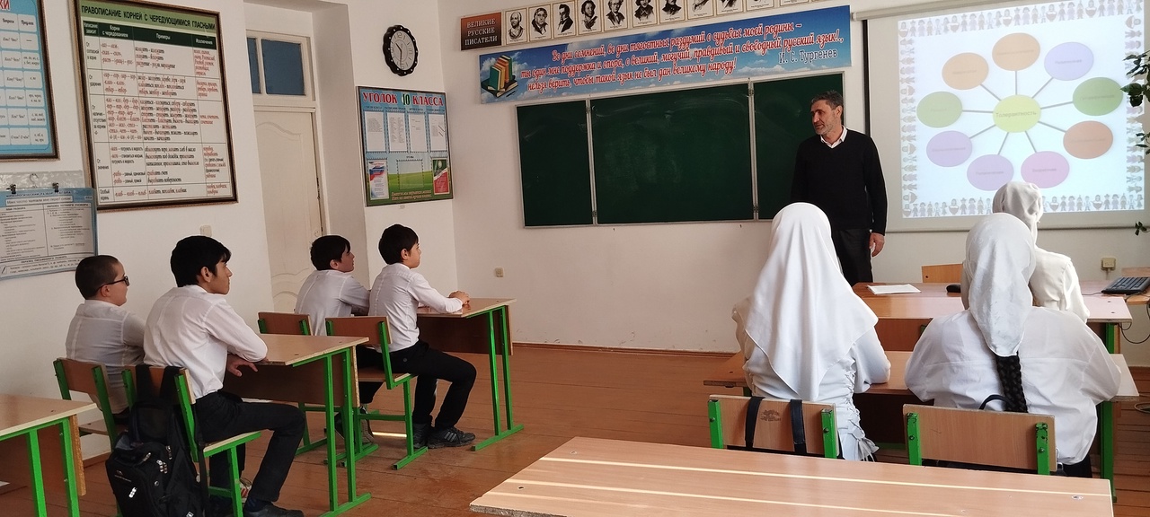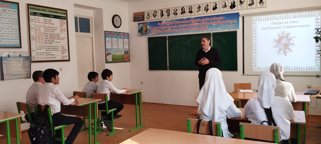 05.03.202405.03.2024г. Заместитель директора по ВР Алимгериев Р.М. провел профилактическую беседу на тему: «На планете Толерантность».Цели беседы:• познакомить детей с понятием «толерантность, толерантное отношение»;• развить убеждённость учащихся в актуальности проблемы;• воспитать чувство уважения друг к другу, к обычаям, традициям и культуре разных народов.В ходе беседы дети узнали, что Российская Федерация — многонациональная страна, и каждый из нас должен проявлять уважение, терпение к чужому образу жизни, поведению и обычаям народа.Далее учащиеся познакомились с понятием и историей возникновения праздника Толерантности. Затем участники беседы выяснили, из-за чего происходят в мире конфликты и теракты.В конце беседы дети ответили на вопрос, какими качествами должен обладать толерантный человек.В результате беседы дети сделали вывод о том, что надо беречь своих близких и всегда следовать золотому правилу морали: «Относиться к другому так, как мы хотим, чтобы относились к нам».