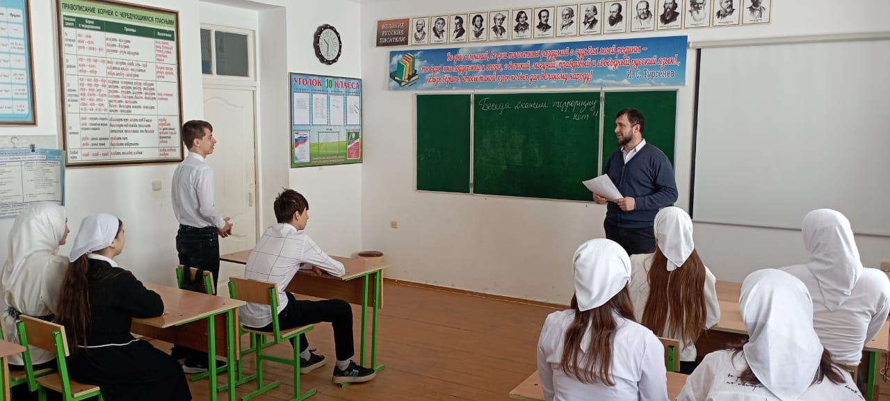 13.03.202413.03.2024 года, в рамках профилактики терроризма и экстремизма, советник директора по воспитанию Жантуев Л.Г. провел в 10-11 классах беседу на тему : "Скажем терроризму -нет"В ходе беседы Жантуев Л.Г. уделял внимание осуждению террористических актов, их влиянию на общество и способам предотвращения их совершения. В процессе беседы рассматривались причины террористических действий, такие как экстремизм, недостаток толерантности, политические конфликты или социальные неравенства. Участники беседы обсуждали последствия террористических актов, включая повреждение инфраструктуры, угрозу безопасности и психологические последствия для людей, методы противодействия терроризму, включая образование, пропаганду мира и согласия, политические и дипломатические меры, а также применение закона и силы для защиты общества от террористических угроз.
