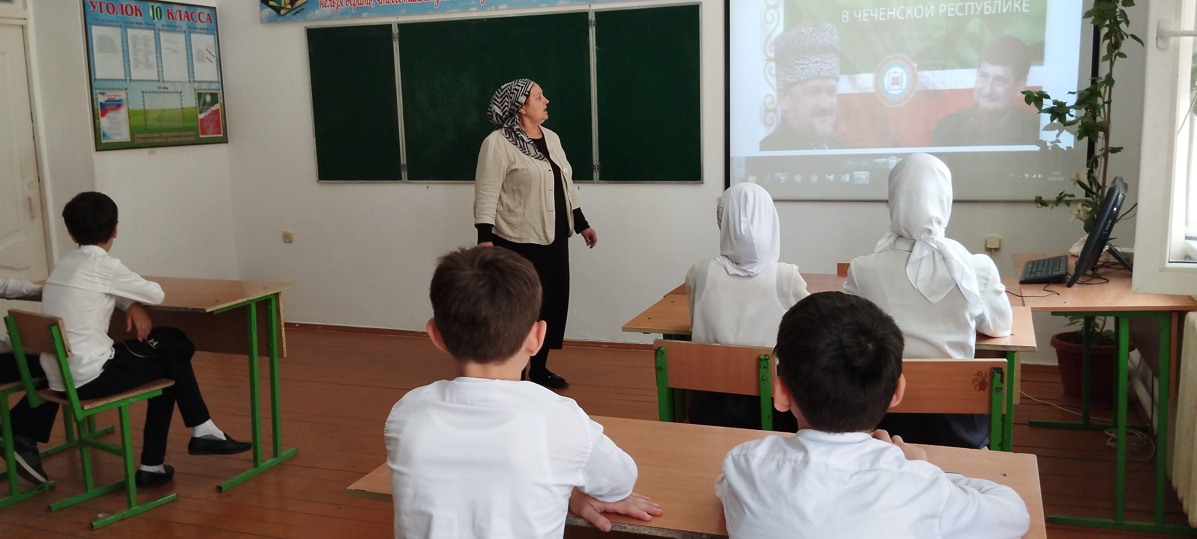 15.04.2024г. классный руководитель Юсупова Л.Д. провела урок мужества в 5 классе на тему: «Глава Чеченской Республики, Герой России Р.А. Кадыров – инициатор отмены режима контртеррористической операции»