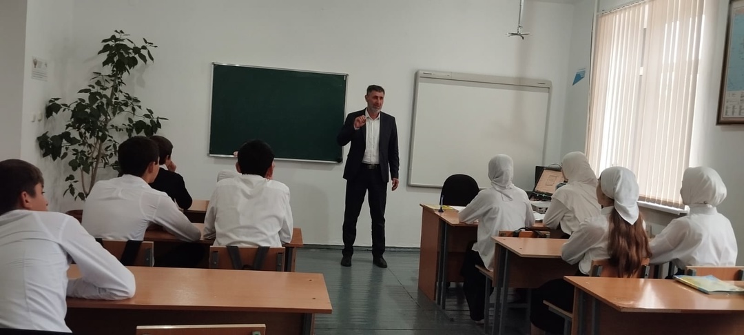 01.10.2024г. Заместитель директора по ВР Алимгериев Р.М. провел беседу по профилактике наркомании и табакокурении с обучающимися 9 класса на тему: "Курение как один из вариантов наркомании"