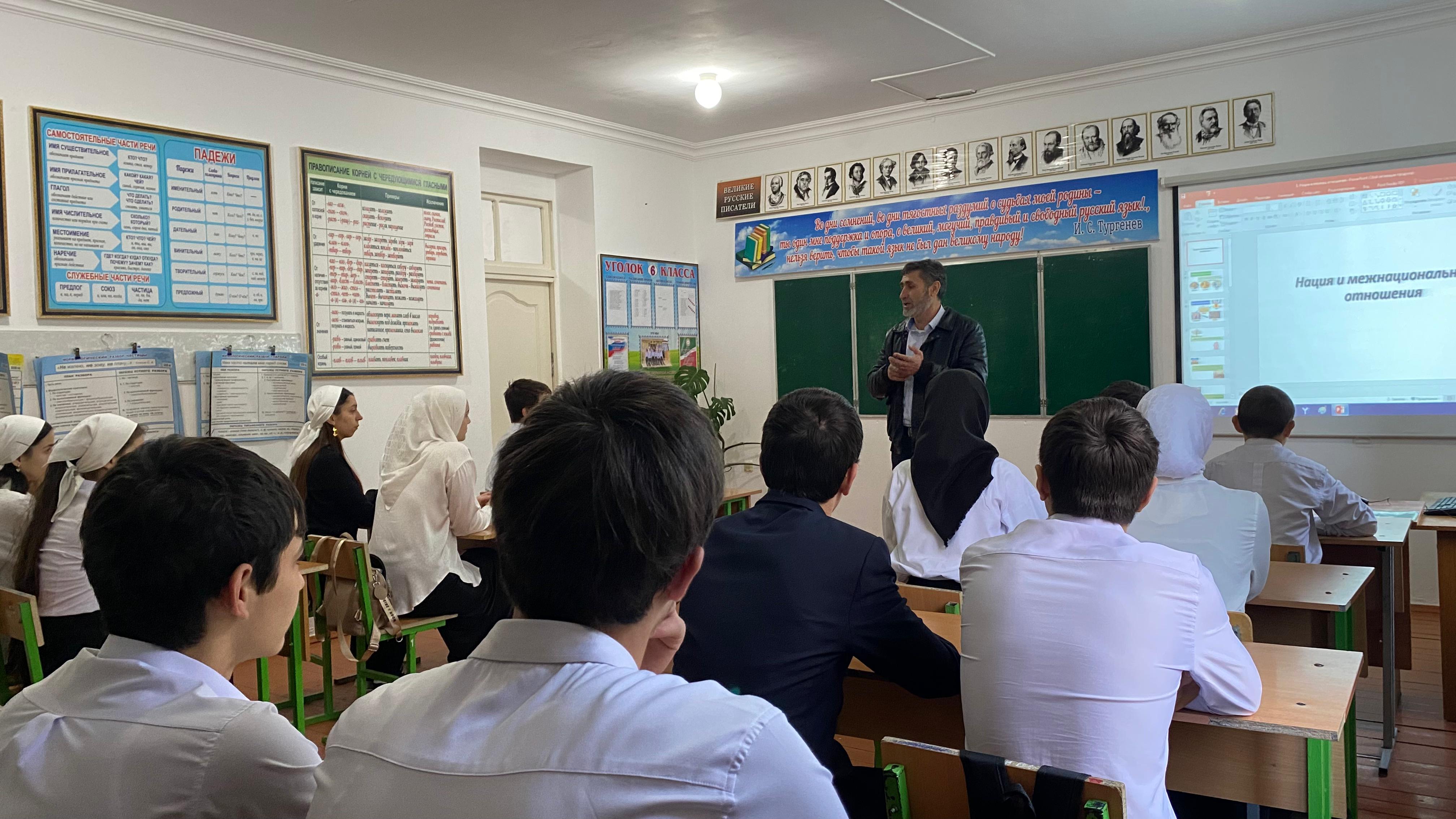 13.11.2024г. проведена беседа на тему "Нации и межнациональные отношения", с целью обсуждения актуальных вопросов, связанных с этнической идентичностью, культурным разнообразием и взаимодействием между различными народами. Участники беседы включали обучающиеся 9-11 классов.