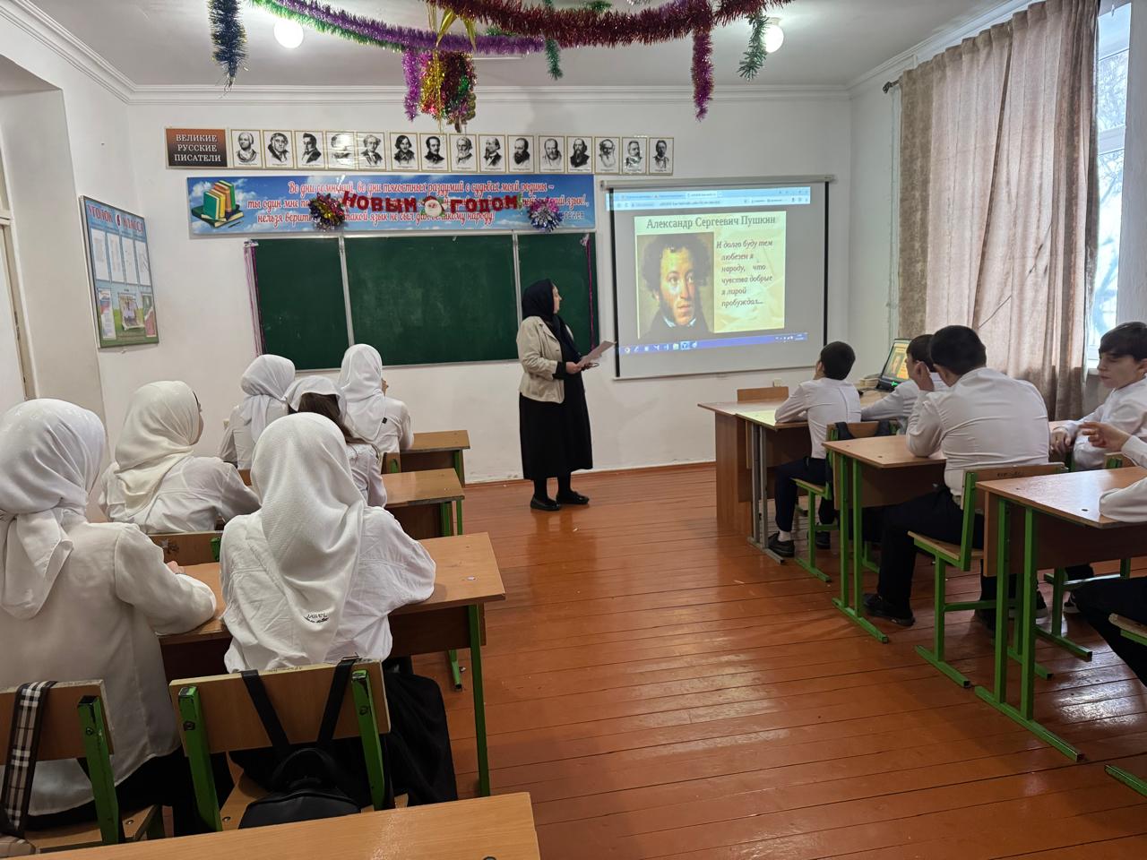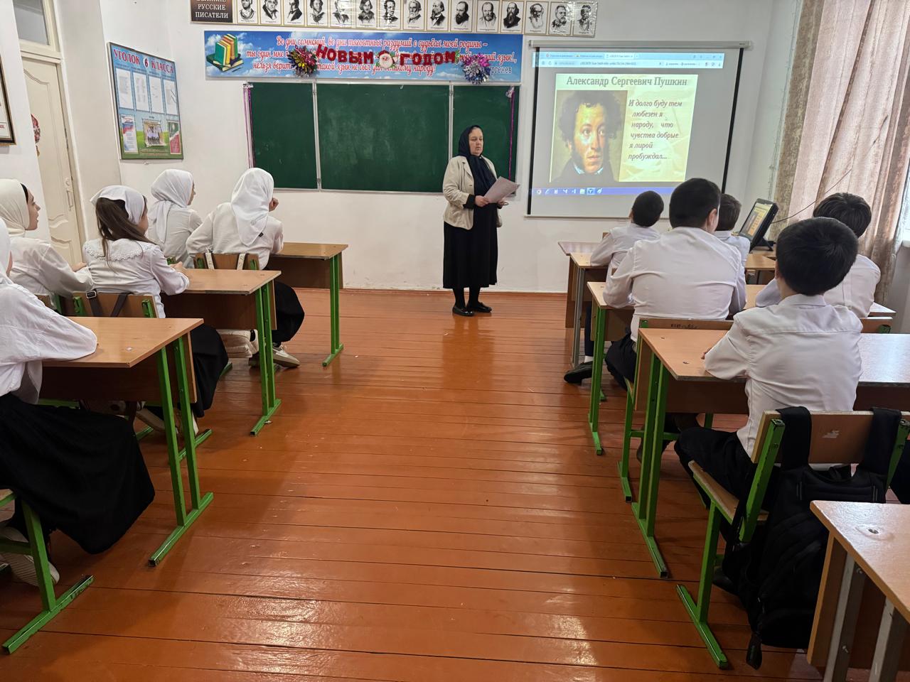 23 декабря 2024 года учитель русского языка и литературы, Юсупова Л.Д. провела беседу, посвященную 225-летию со дня рождения великого русского писателя и поэта Александра Сергеевича Пушкина.