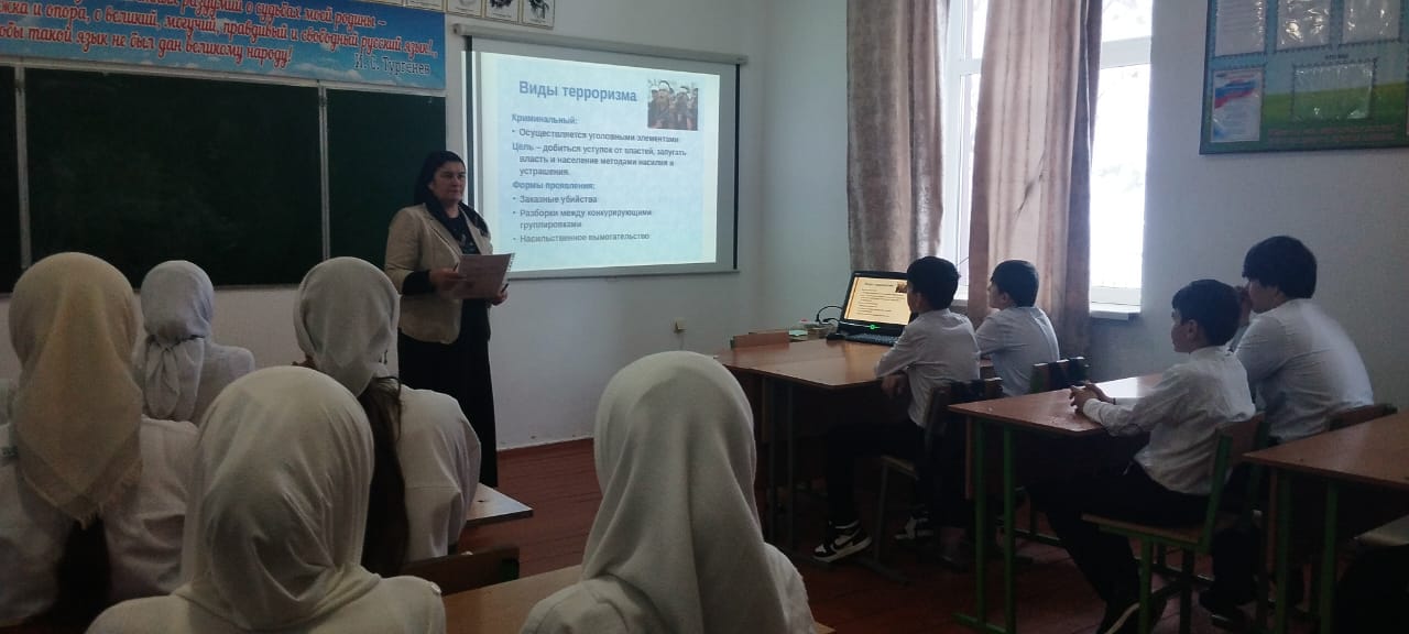 20.01.2025г. классный руководитель Исакова М-А.Ж. провела для учащихся 7 класса беседу на тему: «Современный терроризм и его виды»