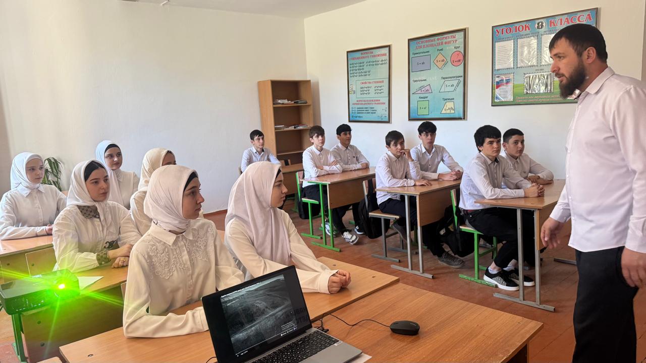 15.04.2025г., советник директора по воспитанию Жантуев Л.Г. провел беседу для обучающихся 9 класса на тему: «Причины начала КТО в Чеченской Республике»