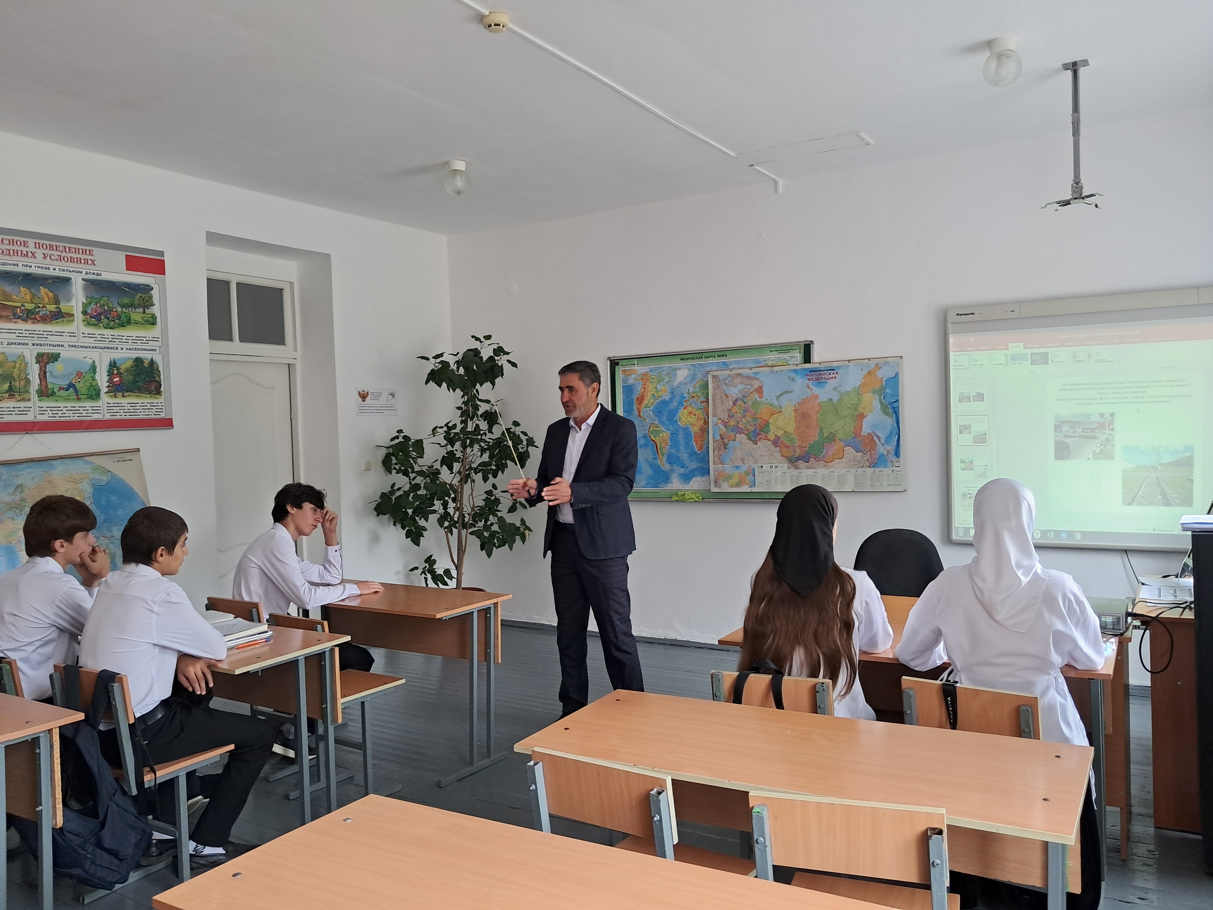 15.09.2025г. Заместитель директора по ВР Алимгериев Р.М., провел беседу с обучающимися 10, 11 классов на тему: "Уступи дорогу поезду".