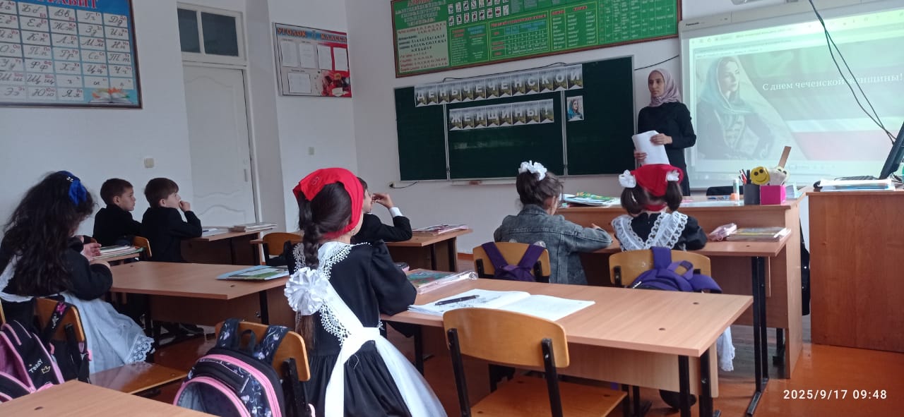 18.09.2025г., классные руководители начальных классов провели беседы с обучающимися начальных классов, посвященные ко Дню чеченской женщины.