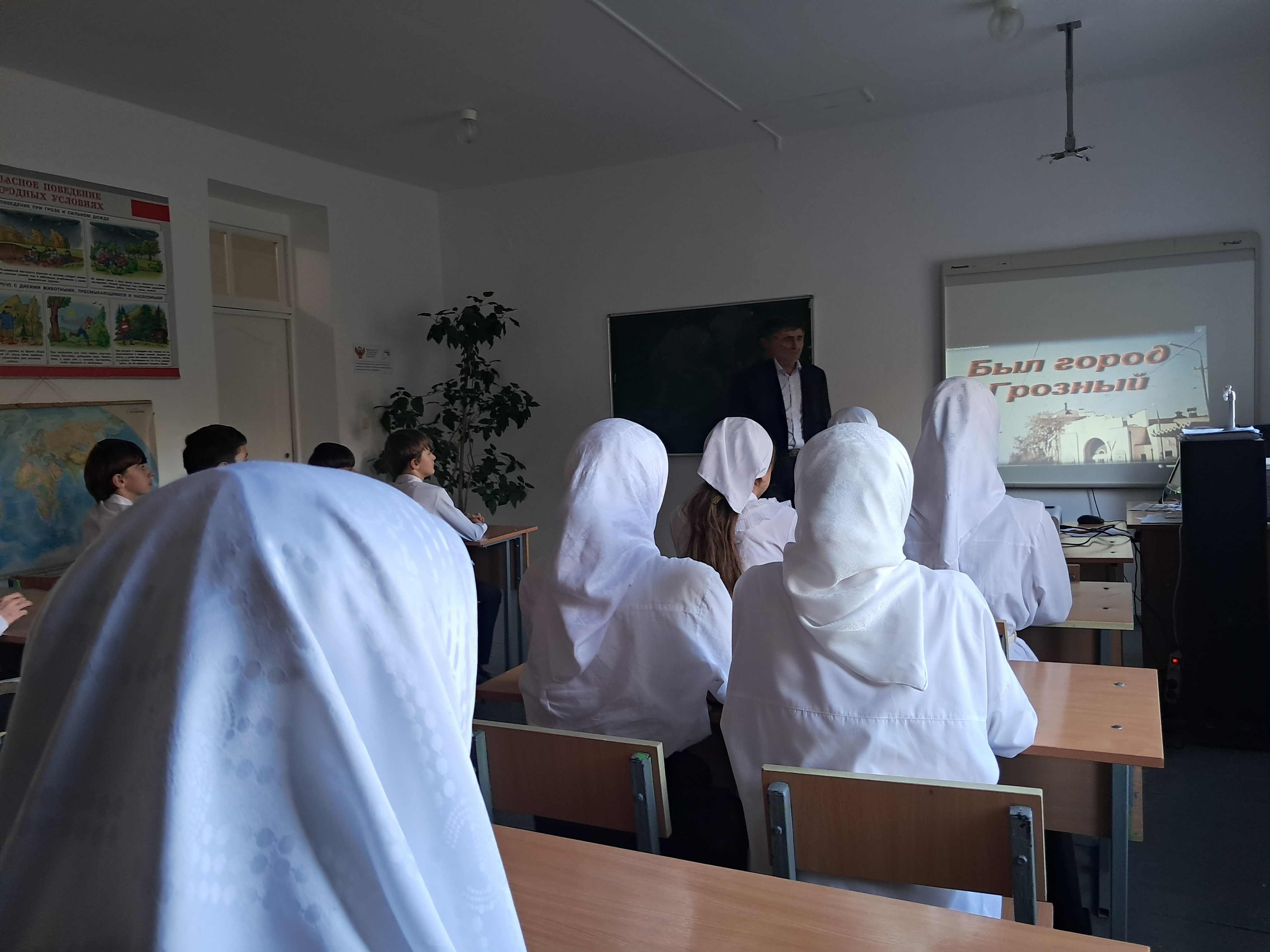 09.10.2025 года, зам. дир. по ВР, Алимгериев Р.М., провел показ документального фильма "Был город Грозный"