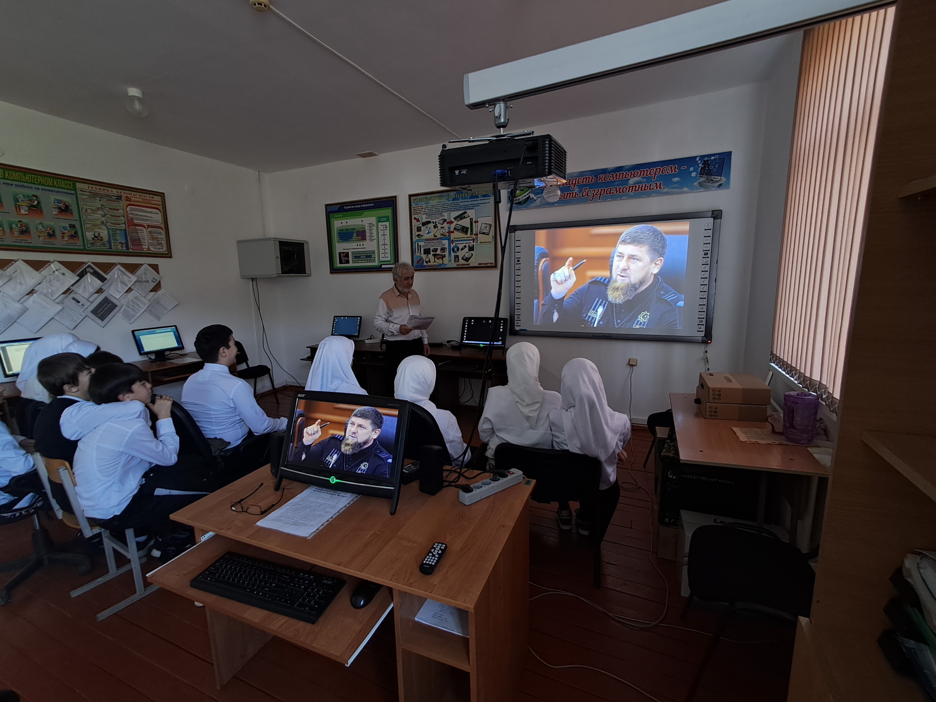 18.10.2025 года, зам. дир. по ИКТ Седирханов М.А., провел урок мужества с обучающимися 8 класса, посвященный лидеру Чеченской Республики, герою Российской федерации Кадырову Р.А.