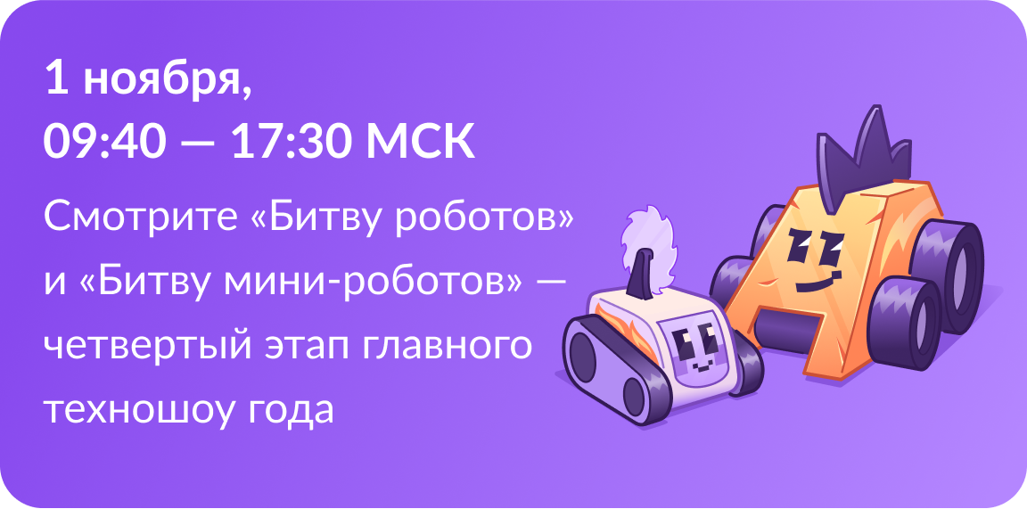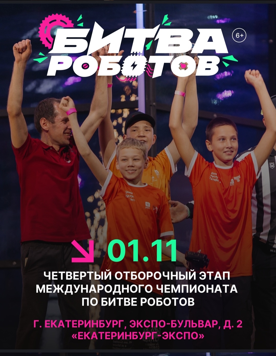 25.10.2025Минцифры России в соответствии с распоряжением ПравительстваРоссийской Федерации от 11 апреля 2023 г. № 889-р сообщает о проведениичетвертого отборочного этапа Международного чемпионата по битве роботов сезона2025 года (далее - Чемпионат, мероприятие). Цель Чемпионата - популяризацияв Российской Федерации инженерной мысли как драйвера развития и поддержкисовременных цифровых технологий.Три отборочных этапа Чемпионата прошли на территории Пермского края,Московской и Ленинградской областей, в которых приняли участие 84 командысо всего мира, из них только 24 команды встретятся в финальном этапе, чтобыпобороться за титул чемпиона битвы роботов 2025 года. На текущий момент прямуютрансляцию этапов посмотрели более 14 млн человек, свыше 18 тыс. человекпосетили отборочные этапы.В четвертом отборочном этапе Чемпионата сразятся 28 команд из России,Беларуси, Индии и Китая: 16 команд в рамках дисциплины «Битва роботов» в весовойкатегории до 110 килограмм и 12 команд в рамках дисциплины «Битва мини-роботов»в весовой категории до 1,5 килограмм. Среди участников - команды МТУСИ,СПбГУТ им. М.А. Бонч-Бруевича, Высшей Школы Нефти, МИСИС, ИТМО, СПбПУПетра Великого, ДГТУ, МИРЭА, НГТУ НЭТИ и других ведущих университетов.Мероприятие пройдет 1 ноября 2025 г. с 11:30 до 19:30 (по местному времени)при поддержке Правительства Свердловской области на территорииМеждународного выставочного центра «Екатеринбург-ЭКСПО» по адресу:Свердловская область, г. Екатеринбург, ЭКСПО-бульвар, д. 2. Программоймероприятия предусмотрено два шоу: дневное (с 13:00 до 14:30) и вечернее(с 18:00 до 19:30).