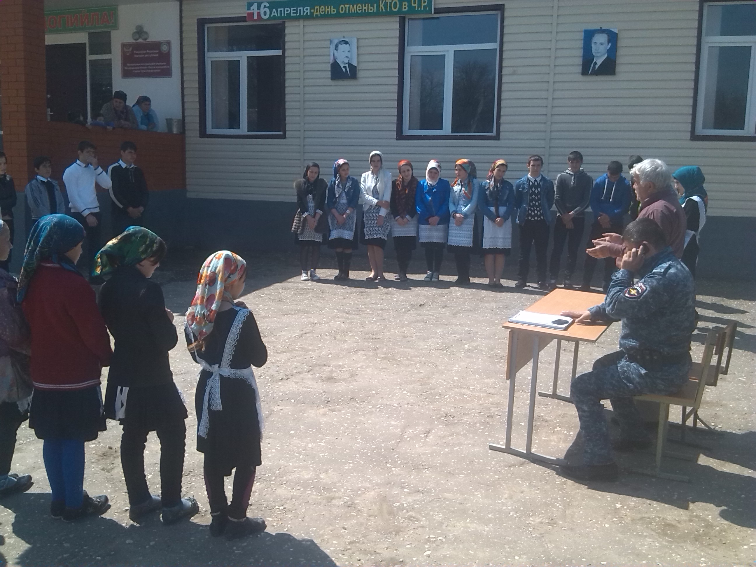 16.04.2016Информация о проведенных мероприятиях, посвященных ко Дню Мира МБОУ «СОШ с. Татай-Хутор Ножай-Юртовского муниципального района». С 06.04 по 16.04.2016г. в школе проведены мероприятия, посвященные ко Дню Мира. Во всех классах проведены классные часы и беседы по темам:-закон мира и добра;-Герой РФ, Глава ЧР Р.А. Кадыров-инициатор отмены КТО;-о мире, о дружбе, о доброте.