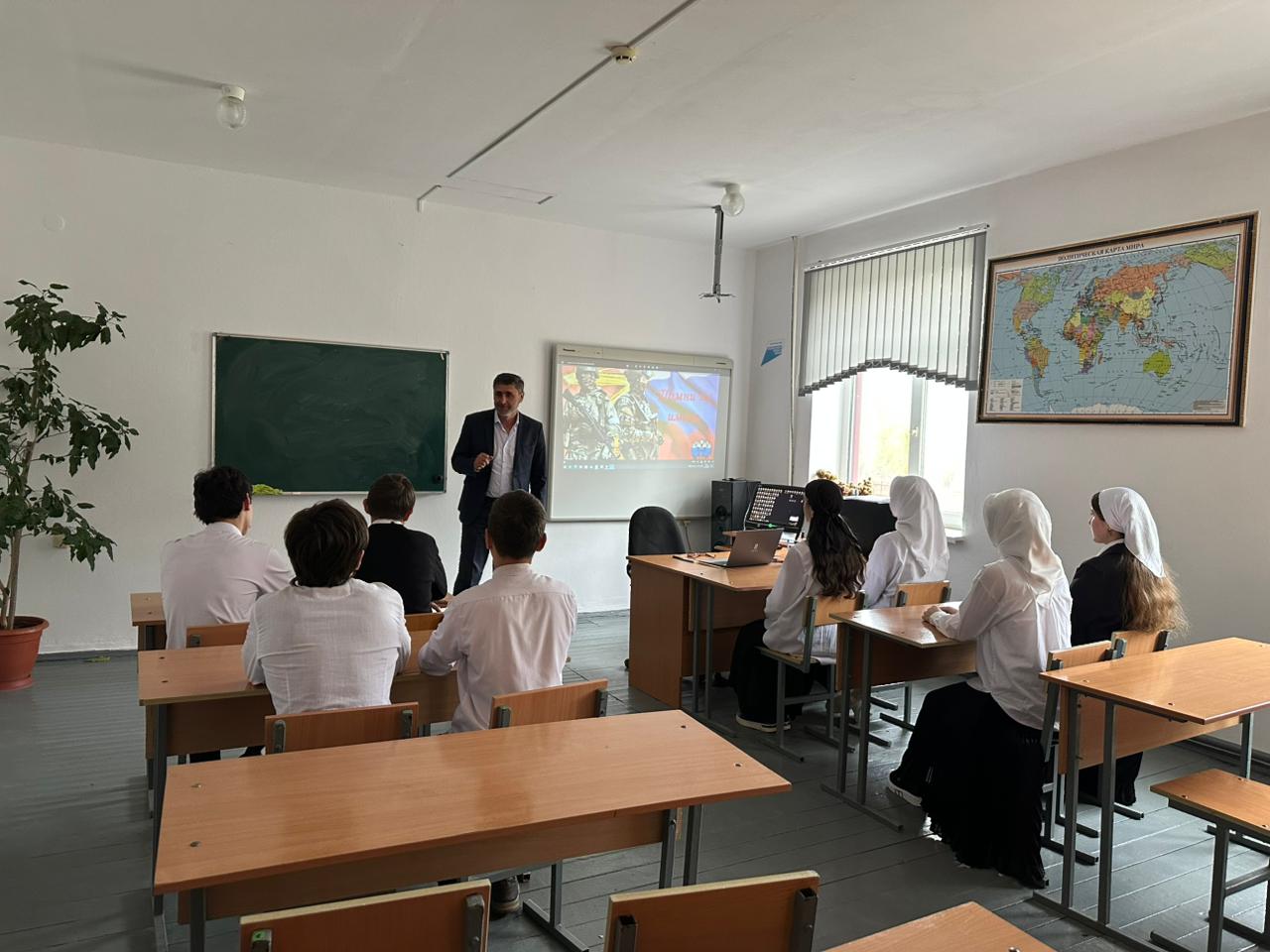 11.11.2025г. заместитель директора по ВР Алимгериев Р.М. провел беседу с обучающимися 10 класса на тему: "Герои СВО"