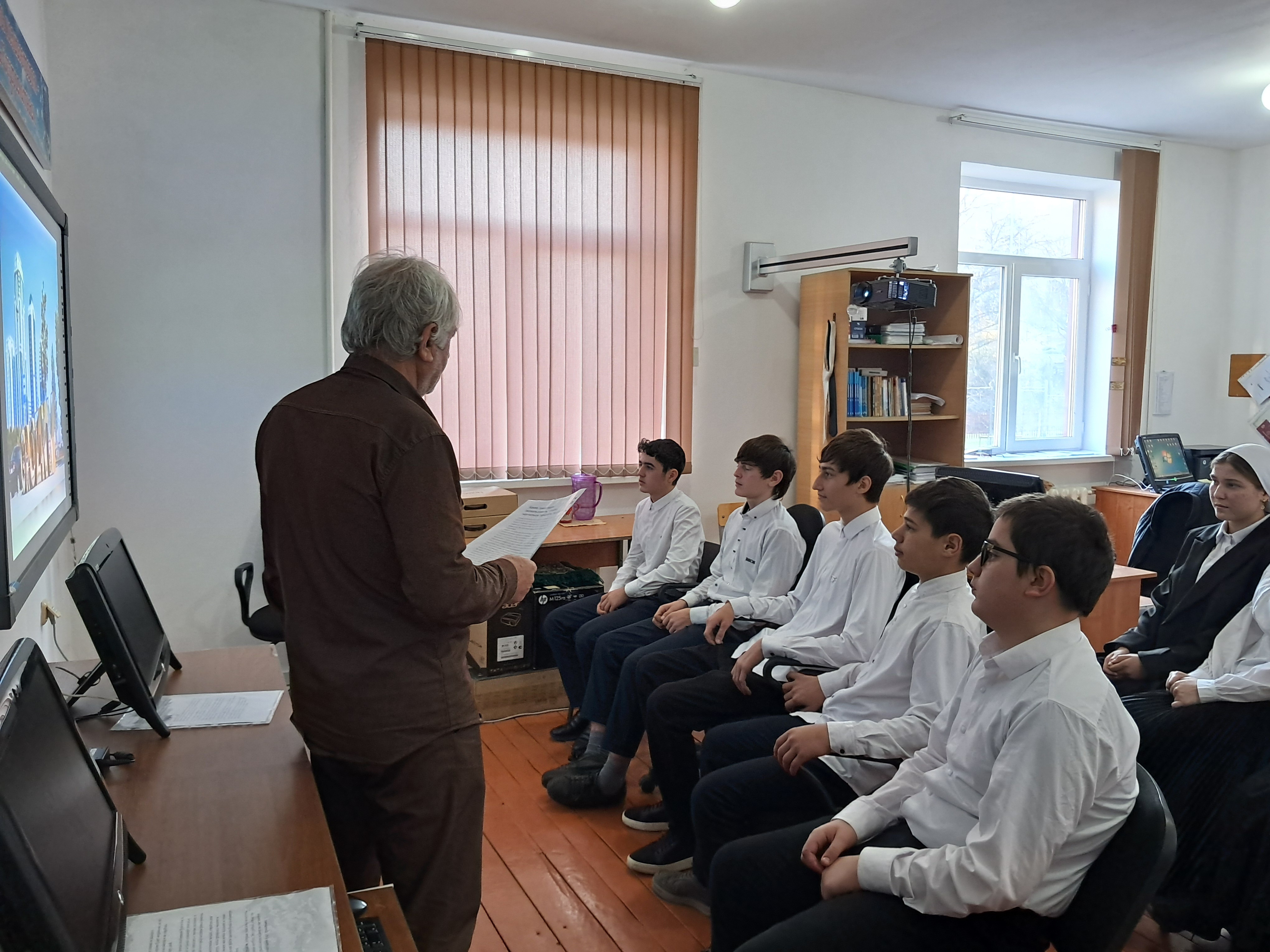 15.11.2025г. заместитель директора по ИКТ Седирханов М.А. провел беседу с обучающимися 9 класса на тему: "История города Грозный"